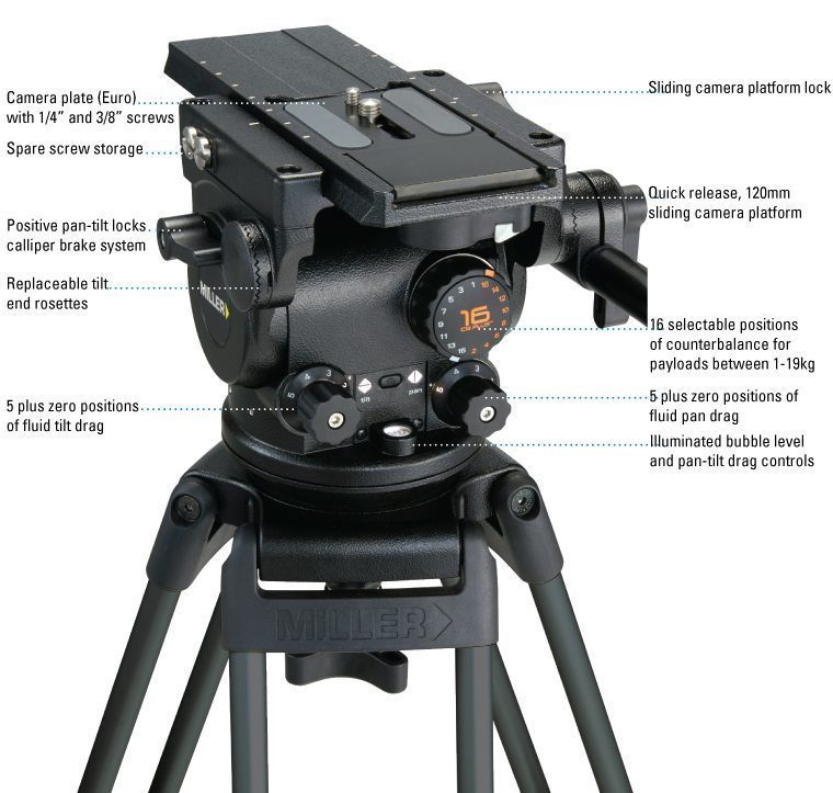 Miller 1050 Skyline 70 Fluid Head Payloads from 4.5 to 37.5 kg