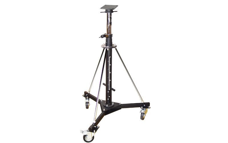 It is compact, simple and convenient construction with useful loading up to 30 kg. The basic column of changeable height is placed on the dolly with three double rubber wheels with ability to adjust the horizon by threaded screw at the end of each leg or or with three rubber wheels with brakes.