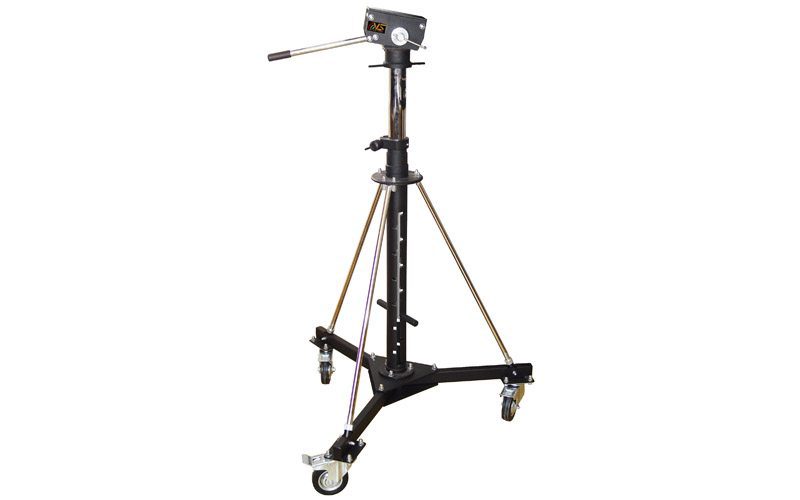 It is compact, simple and convenient construction with useful loading up to 30 kg. The basic column of changeable height is placed on the dolly with three double rubber wheels with ability to adjust the horizon by threaded screw at the end of each leg or or with three rubber wheels with brakes.