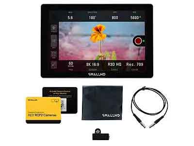 SmallHD Indie 7 RED RCP2 Kit includes Indie 7 monitor RED EXT Camera Control Cable, SmallHD Cleaning Cloth, Micro Lemo Adaptor, and Camera Control software for RED RCP2 cameras.